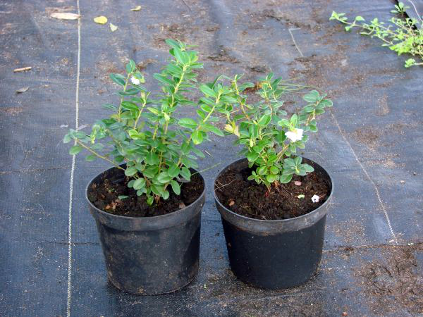 Les buissons d'airelles sont plantés en rangées. Avant de les mettre en terre, il est conseillé de faire tremper les racines dans une solution de permanganate de potassium. Cela détruira la plupart des parasites et des champignons pathogènes, dont les spores pourraient pénétrer sur les plantules.