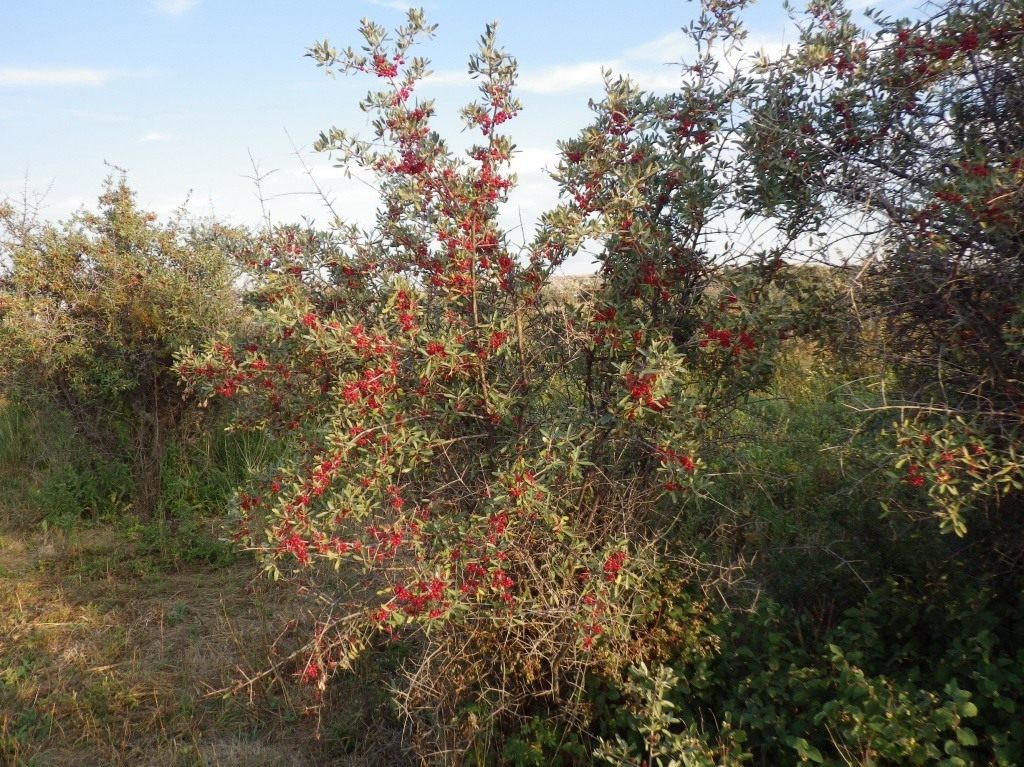 Arbuste volumineux aux pousses épineuses, atteignant 6 m de haut, au feuillage dense et velu d'un vert riche et aux tiges argentées. L'ensemble vert et argent est merveilleusement complété par des baies rouges brillantes qui ressortent coquettement sous les feuilles. Beaucoup plus court en hauteur - seulement jusqu'à 1,5 m - le berger canadien, qui a des tiges brunes lisses et se distingue par un degré élevé de résistance à l'hiver.