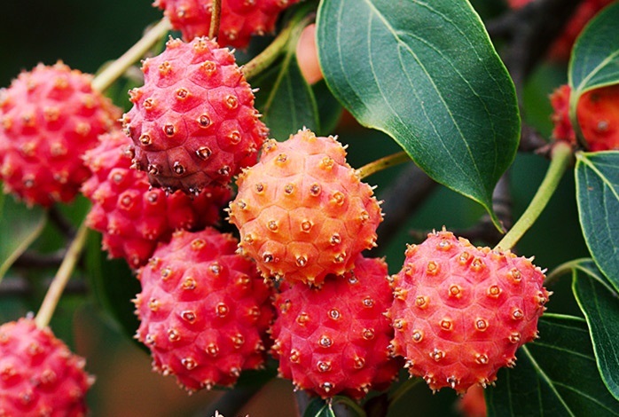 Le fruit du cornouiller est une drupe. Il est souvent doté de la forme d'une boule ou d'une ellipse, peint en rouge riche, rouge-orange, bleu-noir, bleu, noir. Il y a aussi un cornouiller blanc. En 1548, un nom si intéressant est devenu connu, qui ressemblait à un arbre à chien. Ce n'est qu'en 1614 qu'il a changé et qu'il est devenu populairement connu sous le nom de cornouiller. Actuellement, dans les cercles des amateurs de cultures, le nom de l'arbre est l'arbre à chiens, qui a une traduction intéressante - "arbre à chien". La culture a reçu son deuxième nom moderne "l'arbousier" en raison de la présence d'inflorescences denses en capitules, qui se transforment ensuite en fruits juteux.
