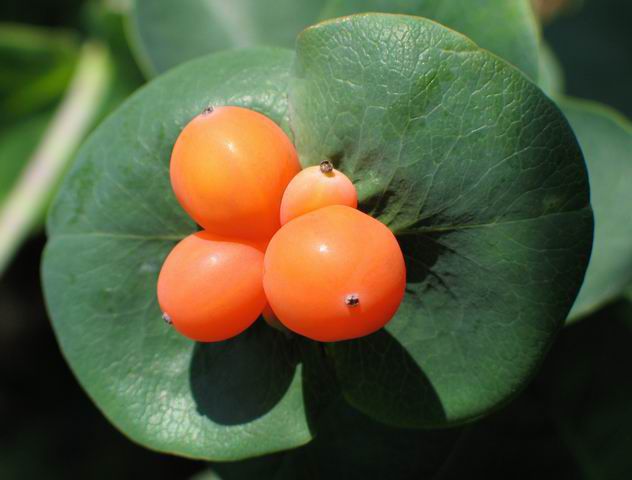 L'arbuste ne semble pas moins intéressant au stade de la formation des fruits. Les baies oblongues rouges et rouge orangé augmentent les qualités décoratives de la plante. Il est à noter que les fruits du chèvrefeuille, le chèvrefeuille, ne sont pas propres à la consommation humaine.