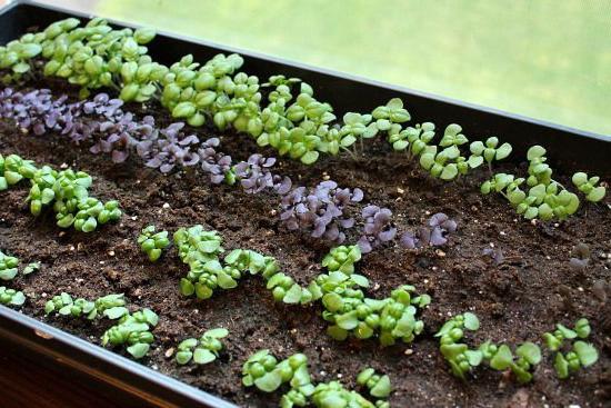 Avant le semis, les graines sont prétraitées en les trempant dans de l'humate de sodium ou des stimulants de croissance tels que l'Albit ou le Zircon. Ensuite, ils sont disposés à la surface du sol à une distance de 5 centimètres les uns des autres et de 10 centimètres entre les rangées et recouverts par le dessus d'une couche de terre d'environ un centimètre d'épaisseur. Après cela, le semis est arrosé, recouvert de verre ou d'un film transparent et placé dans un endroit ensoleillé où la température est maintenue dans la plage de +23 - + 27 ° C. Le soin supplémentaire des semis de basilic comprend une aération et une pulvérisation régulières.