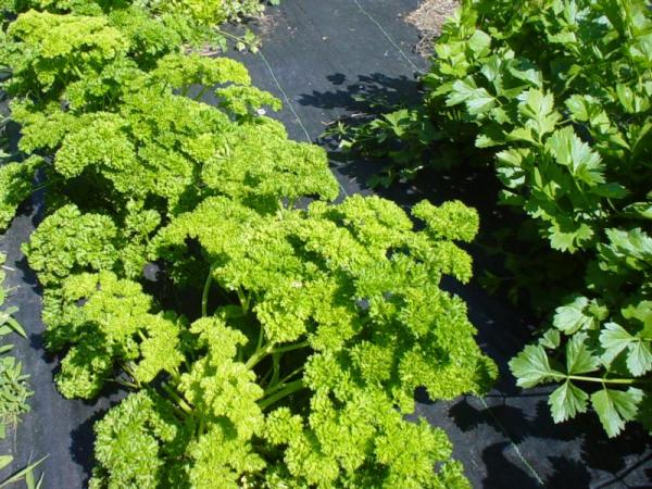 Le lit de jardin pour elle à l'automne est fertilisé avec de l'humus. Il est préférable que le fumier ait été appliqué sous une culture précédente, par exemple des concombres ou du chou, et le persil poussera bien à cet endroit au printemps prochain. Au printemps, avant de planter du persil (ou comment semer du persil), vous pouvez appliquer des engrais minéraux complexes. Vous pouvez ajouter du superphosphate, car elle aime le phosphore et le potassium, mais est pratiquement indifférente à l'azote. Par conséquent, certains résidents d'été plantent du persil au printemps parmi les tomates, à côté desquelles il pousse bien. Beaucoup ne distinguent pas les lits séparés, font pousser de l'aneth et du persil dans tout le jardin, cela ne conduit pas toujours à une bonne récolte.