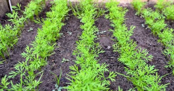 La culture de l'aneth selon la méthode de la ligne a ses propres caractéristiques pour le semis et l'entretien.Avant de semer, des rainures peu profondes sont pratiquées et renversées avec une solution de permanganate de potassium. Lorsque le sol est bien préparé, vous pouvez semer. Il doit être planté avec des graines espacées de 5 cm entre les plantes et pour l'allée d'aneth semé de 20 cm, afin qu'à l'avenir, la verdure du buisson ne soit pas encombrée. Aussi, l'aneth peut être cultivé entre d'autres cultures plantées au printemps, sans oublier la distance pour un bon développement du feuillage. Toutes les 2 semaines, vous pouvez ajouter quelques rangées d'aneth à récolter tout au long de la saison.