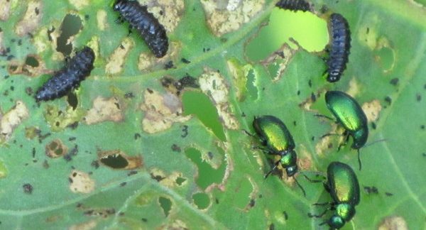 Les trous dans les feuilles sont probablement l'œuvre du chrysomèle. À la fin de l'hivernage, qu'il passe au stade de coléoptère, il commence à manger activement des feuilles d'oseille. Il pond ses œufs sur le dos des feuilles ; pendant l'été, 2 voire 3 générations de parasites se développent, qui se nourrissent activement de la plante. Le meilleur remède est la teinture de pyrèthre, cette merveilleuse fleur peut décorer les parterres de fleurs et sa teinture peut sauver la récolte d'oseille. Elle doit pulvériser les plantes plusieurs fois au cours de l'été.